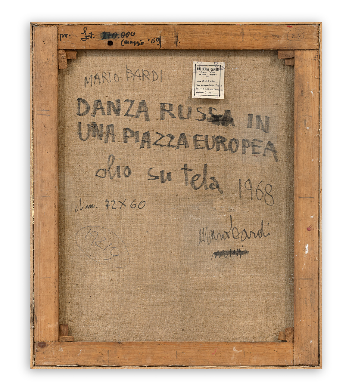 Etichetta e timbri della Galleria Carini (MI) al retro