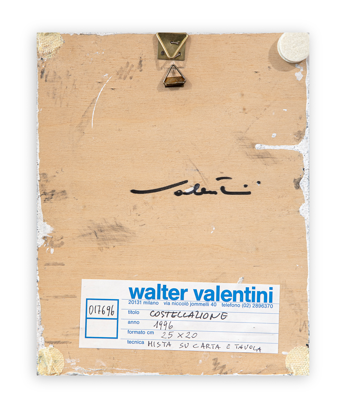 Etichetta dell'Artista con caratteristiche tecniche dell'opera al retro