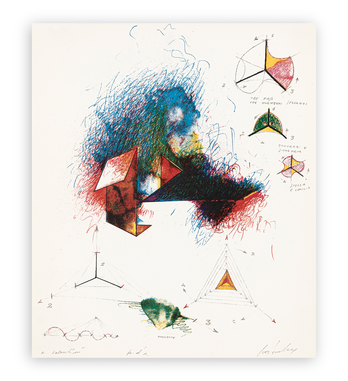Edizione d'arte composta da un fascicolo recante poesie di numerosi poeti italiani e internazionali e da una litografia di Giò Pomodoro recante firma, dedica ad personam e numerazione (Esemplare P.d'a.) a matita al fronte