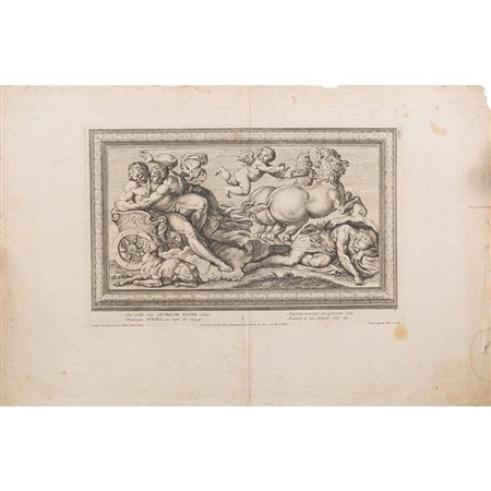 Incisione a bulino tratta da Annibale o Agostino Carracci da palazzo Farnese di Roma