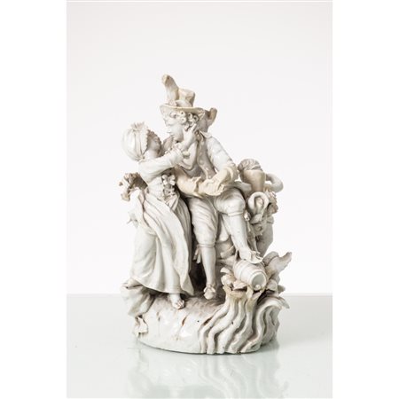 Gruppo scultoreo in porcellana bianca raffigurante "Scena galante" (usure e restauri)