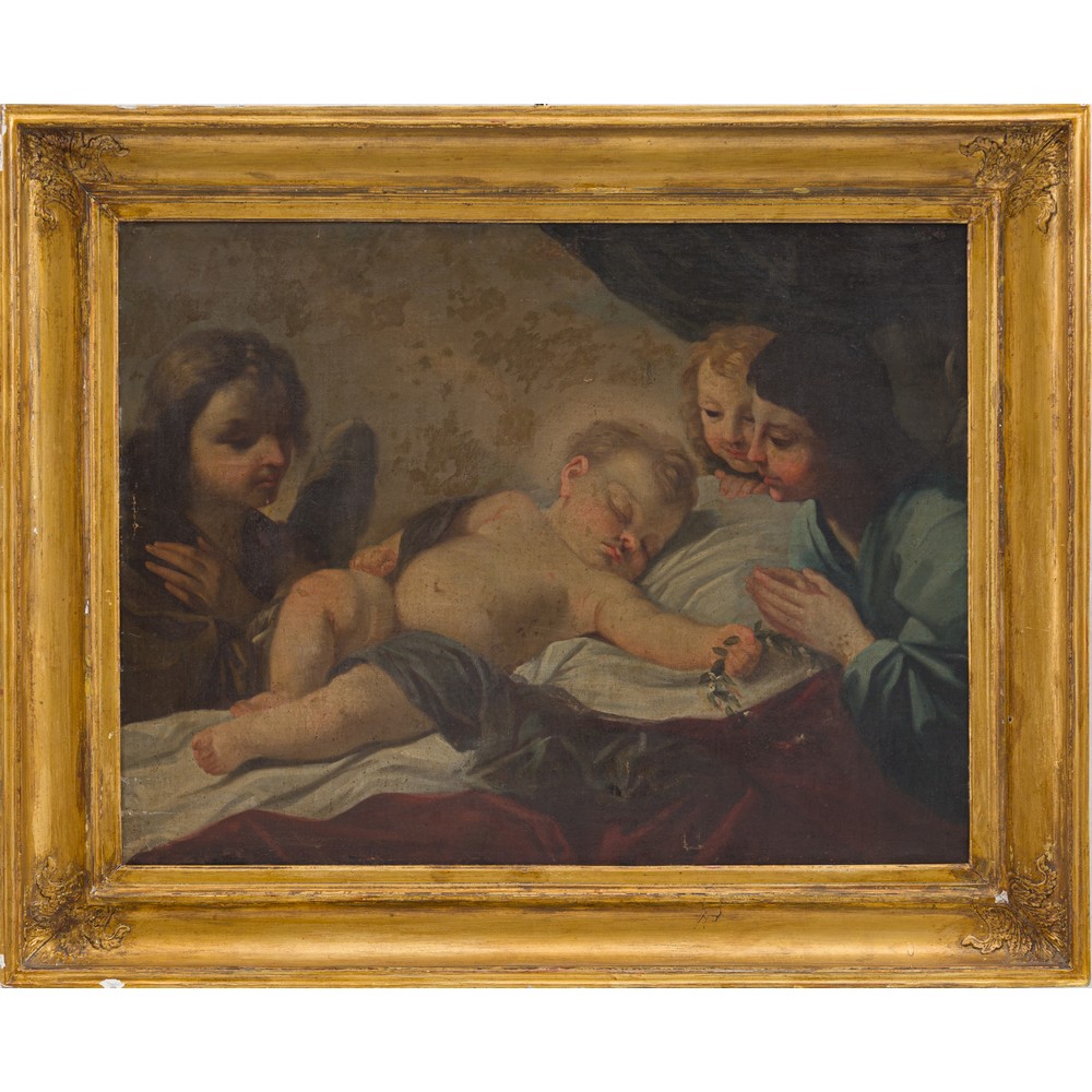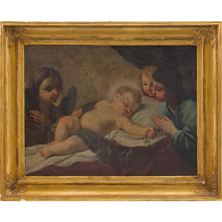 Il riposo del Bambin Gesù con gli Angeli in adorazione
