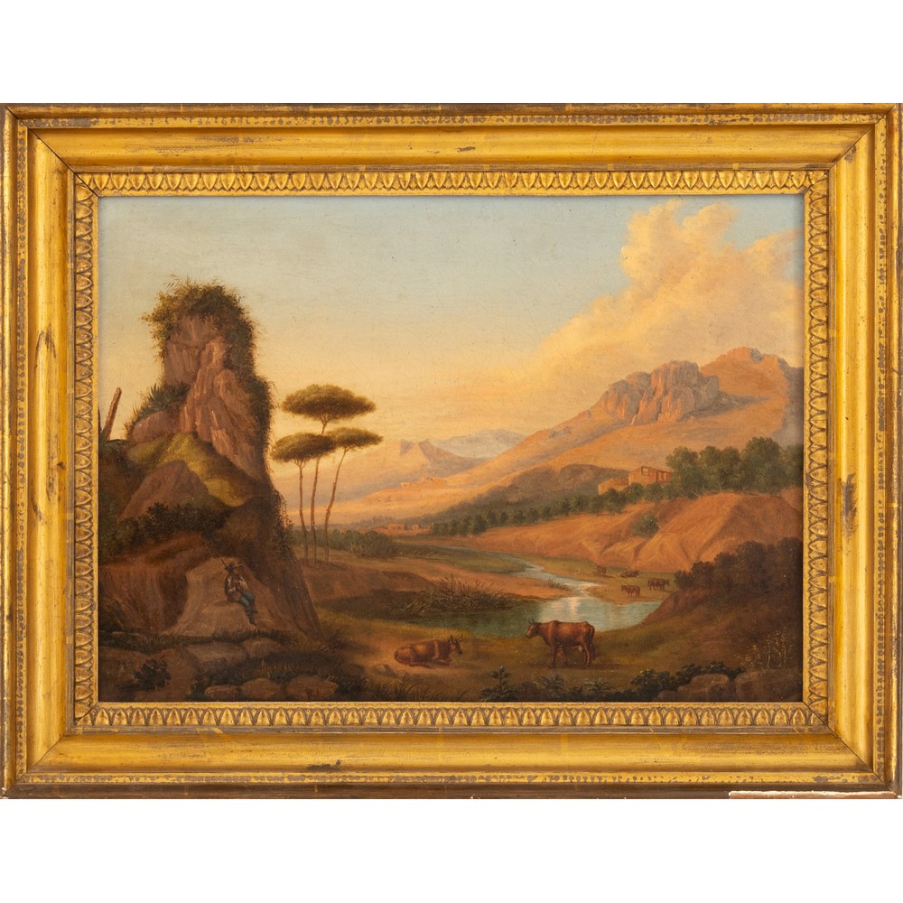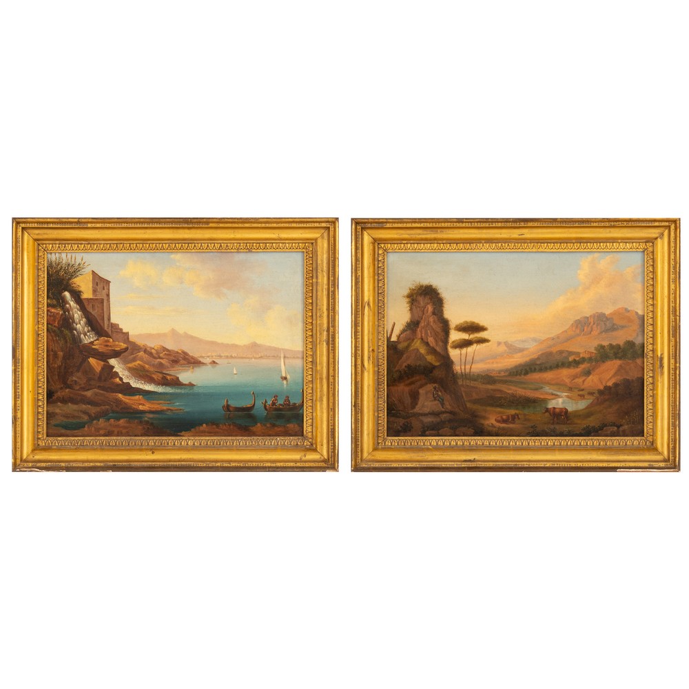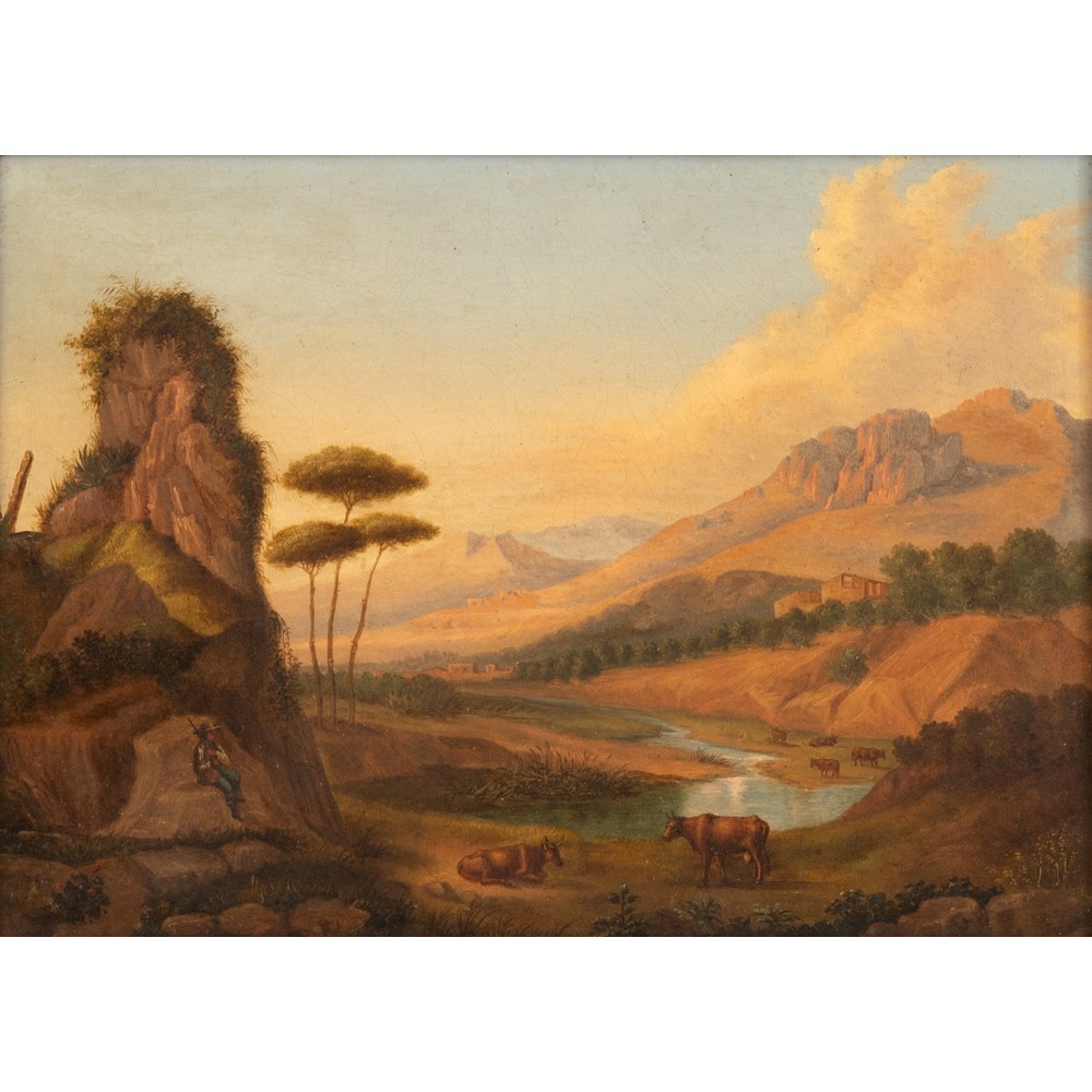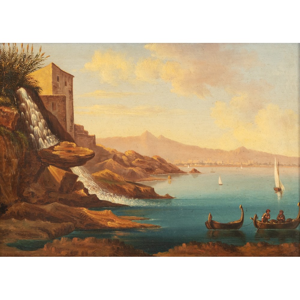 Paesaggio con pastore e armenti - Paesaggio costiero con barche e pescatori