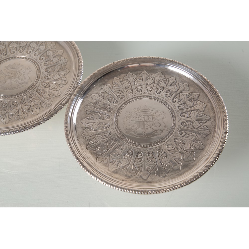 Coppia di alzate in argento sterling sbalzato e cesellato con al centro il blasone dei duchi di Norfolk