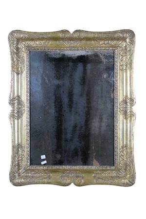 SPECCHIERA con cornice a guantiera dorata con argento e mecca e decorata da incisioni a soggetto fogliaceo Sicilia XIX secolo h cm 77 x 63