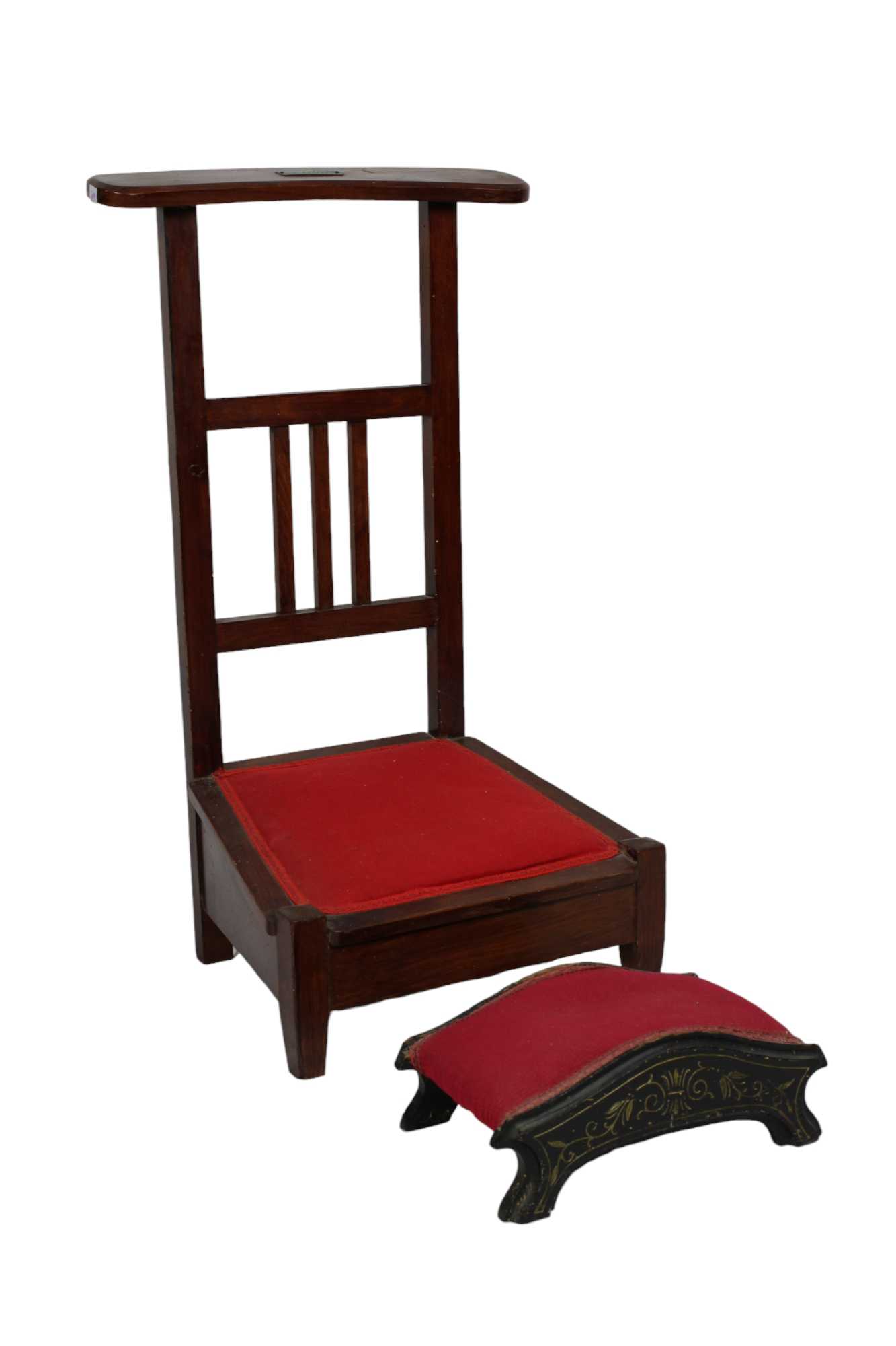 INGINOCCHIATOIO E POGGIA GAMBE in rovere Sicilia XX secolo h cm 84 x 48 x 38