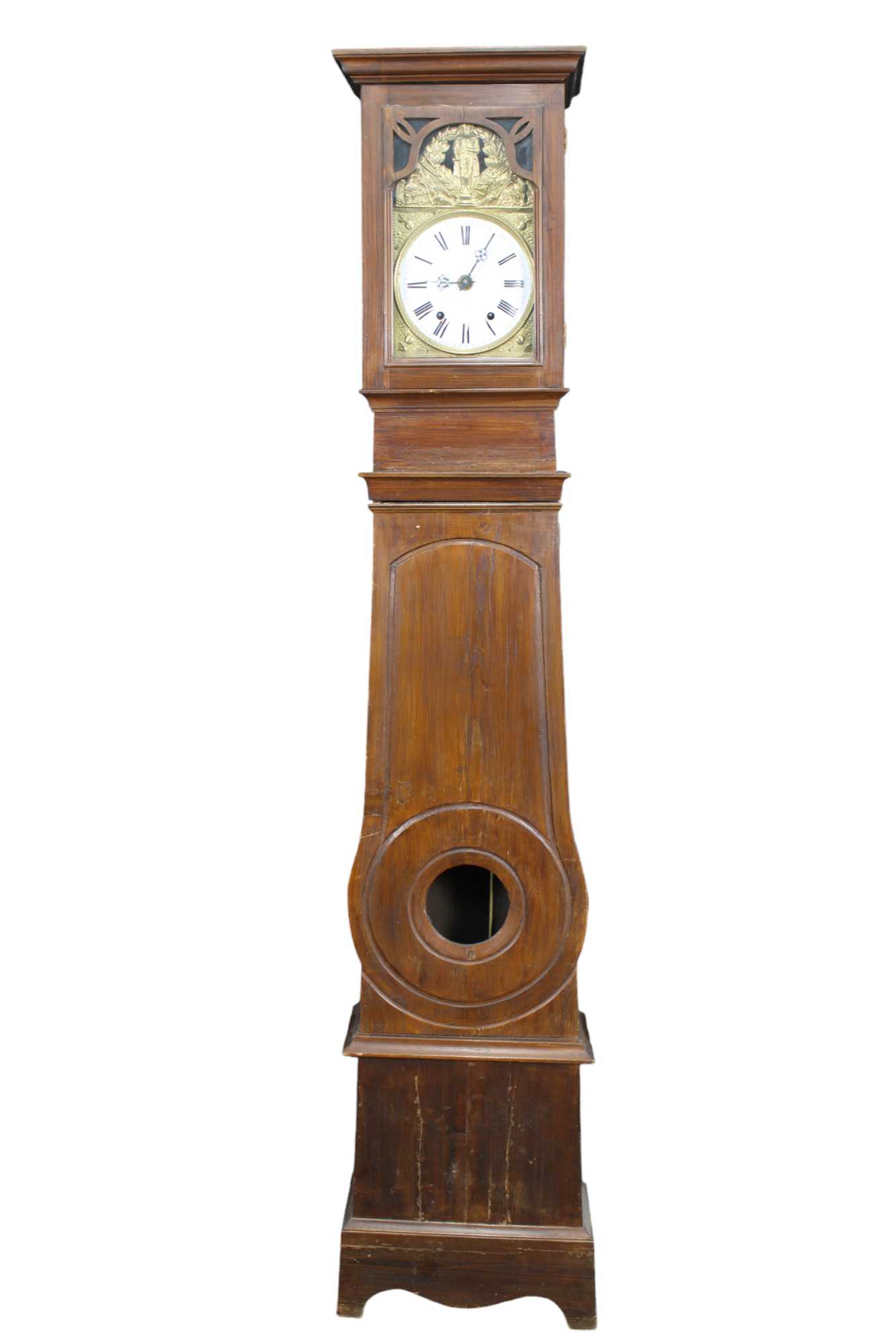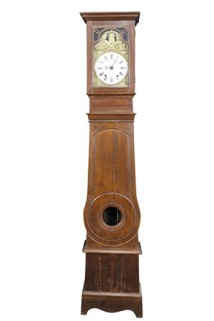OROLOGIO A TORRE in abete con decoro in ottone sbalzato Italia primi 900 h cm 225 x 45 x 26