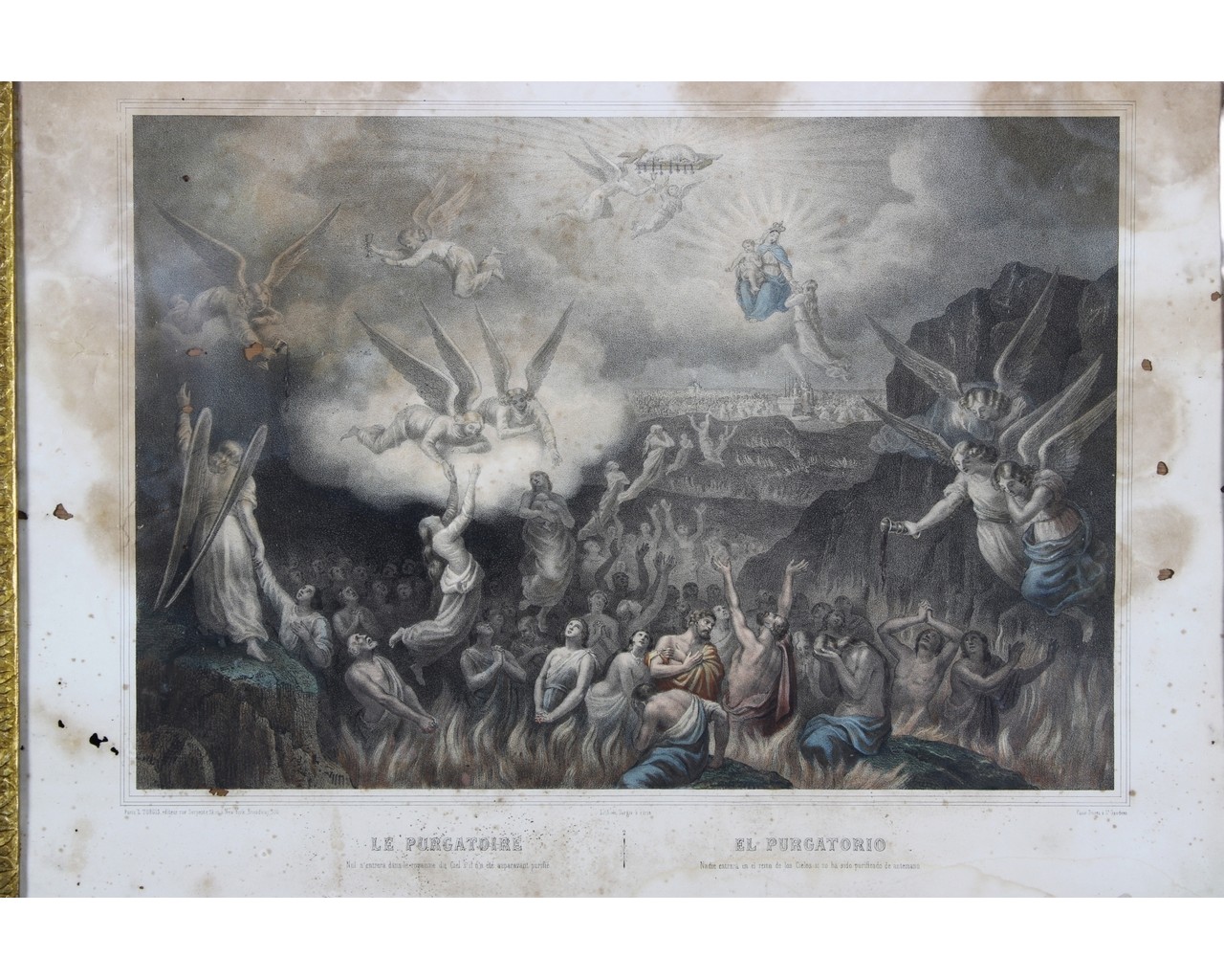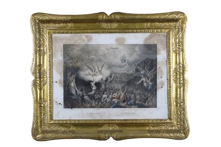 CORNICE A GUANTIERA dorata con argento e mecca e decorata da incisioni a soggetto fogliaceo con stampa Sicilia XIX secolo h cm 42 x 58 / cornice h cm 63 x 78