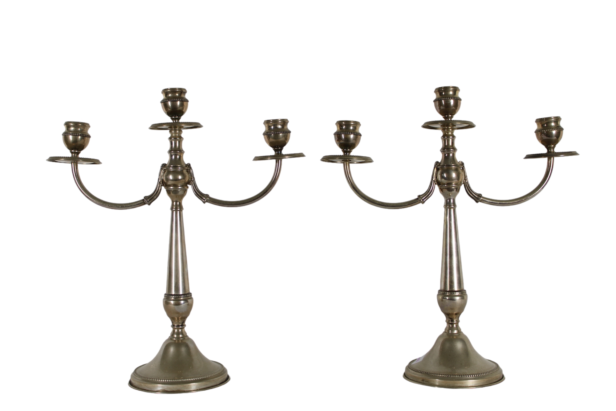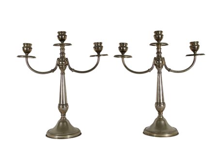 COPPIA DI CANDELABRI a 3 fiamme in argento finemente cesellato maestranze siciliane primi XX secolo h cm 35 x 31 x 12
