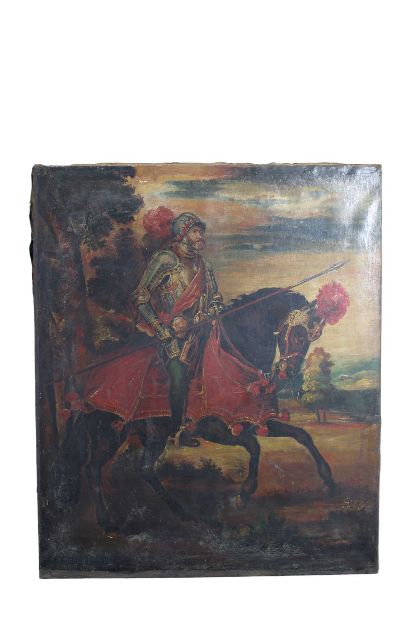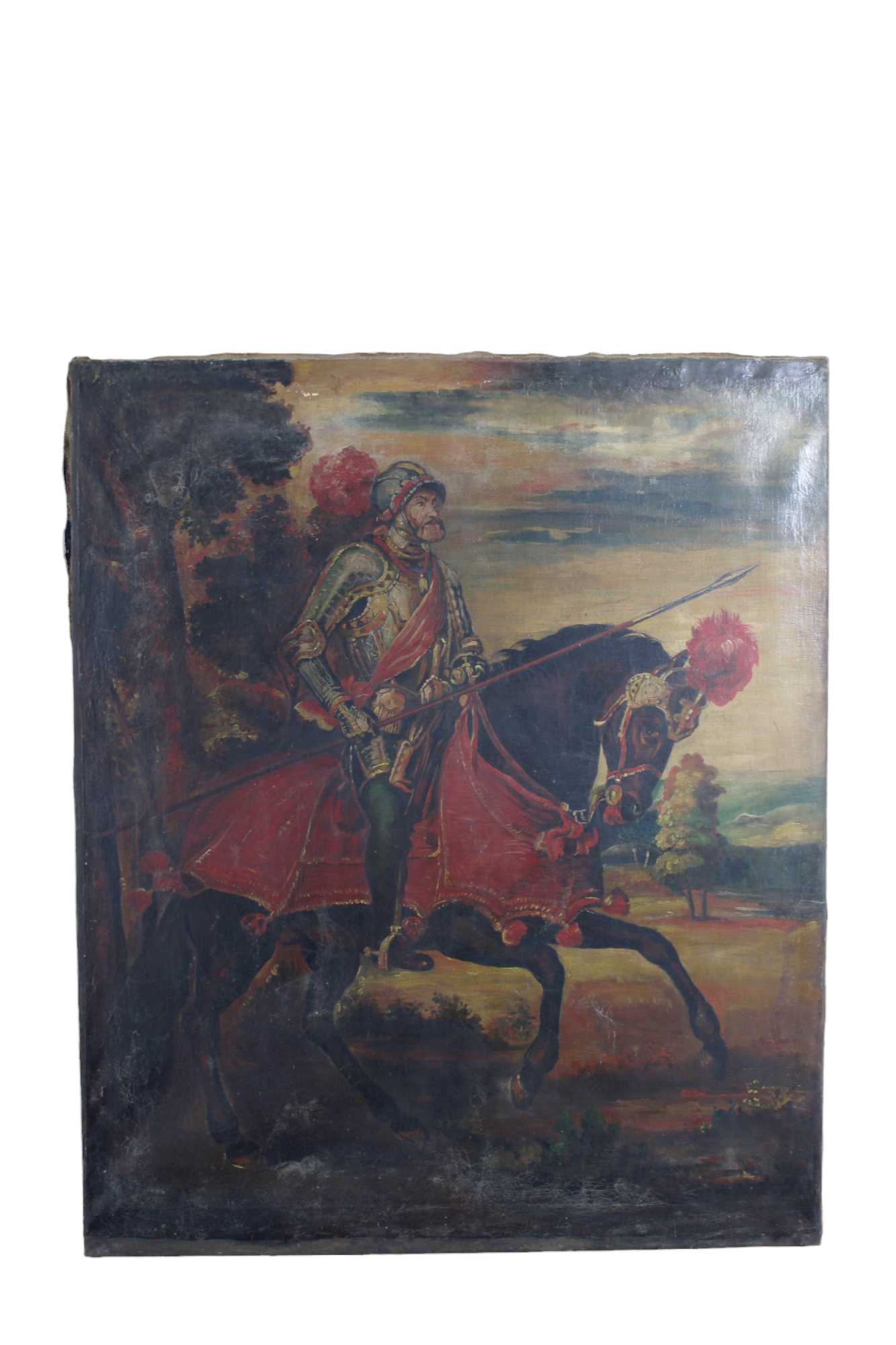 OLIO SU TELA raffigurante Cavaliere in arme scuola italiana XIX secolo h cm 120 x 100