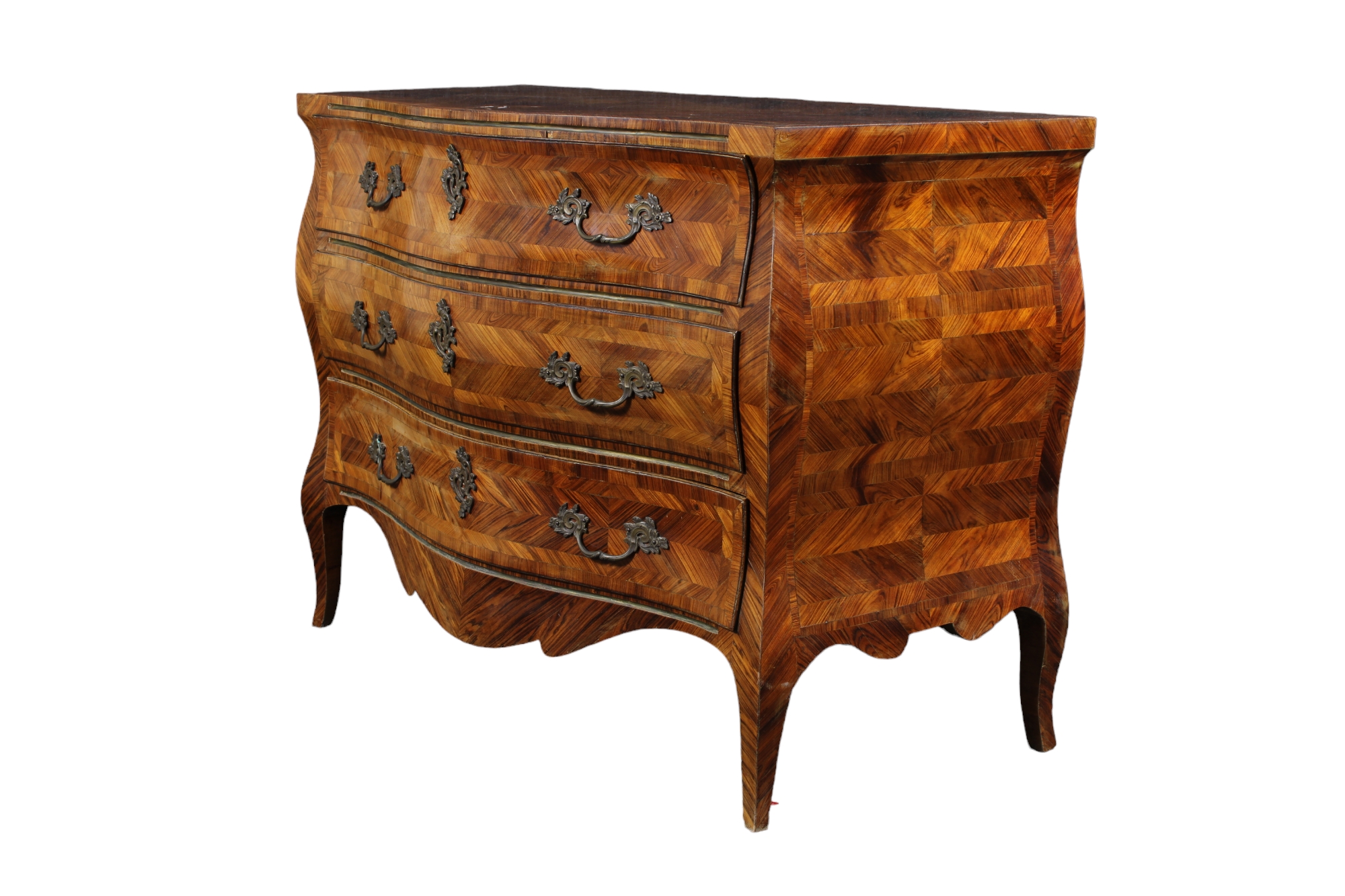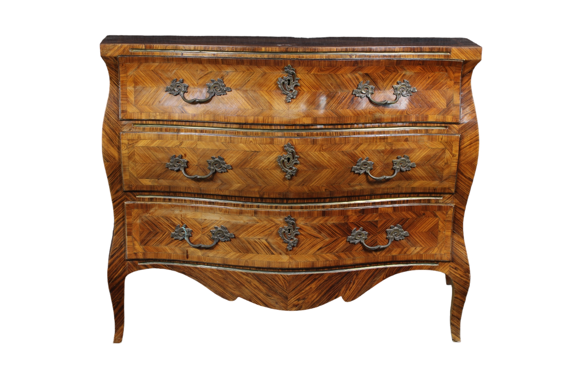 CASSETTONE STILE LUIGI XV lastronato in ebano viola a 3 tiretti manigleria in bronzo manifattura siciliana XX secolo h cm 95 x 130 x 65