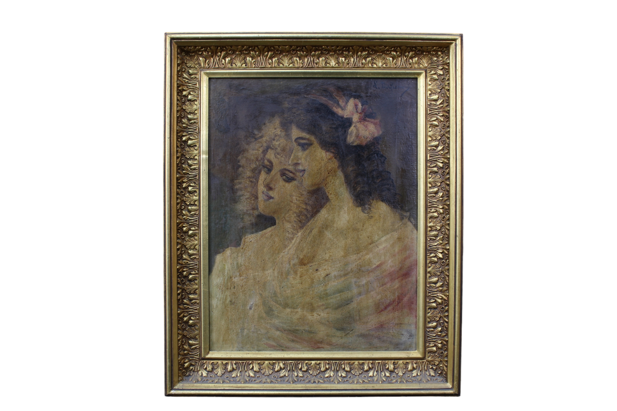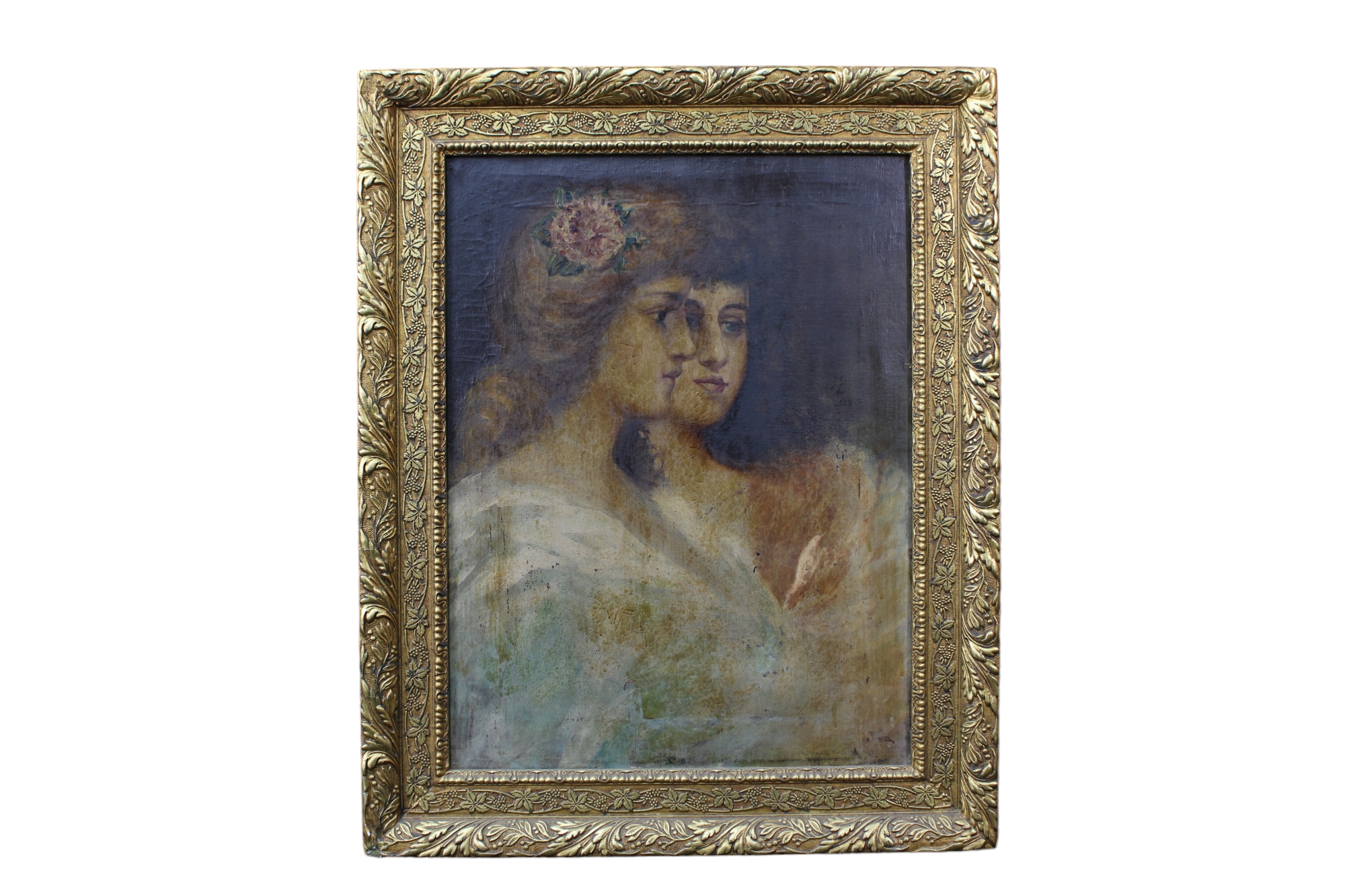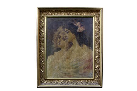 LOTTO DI 2 DIPINTI OLIO SU TELA raffiguranti giovani donne di cui uno firmato L.Di Giovanni , dentro cornici in legno e pastiglia dorata scuola italiana primi XX secolo h cm 66 x 50 / cornice h cm 81 x 66