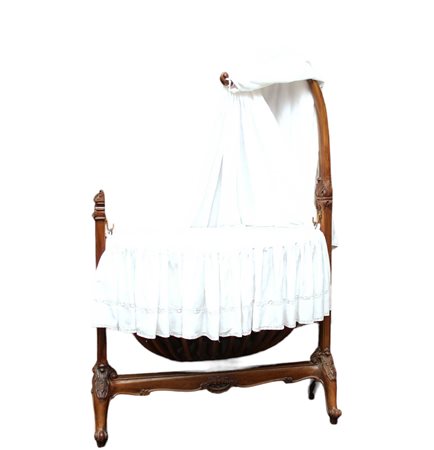 BELLA CULLA in noce, conca a liste curve , sostenuta da supporti decorati da intagli Genova XIX secolo h cm 161 x 100 x 57