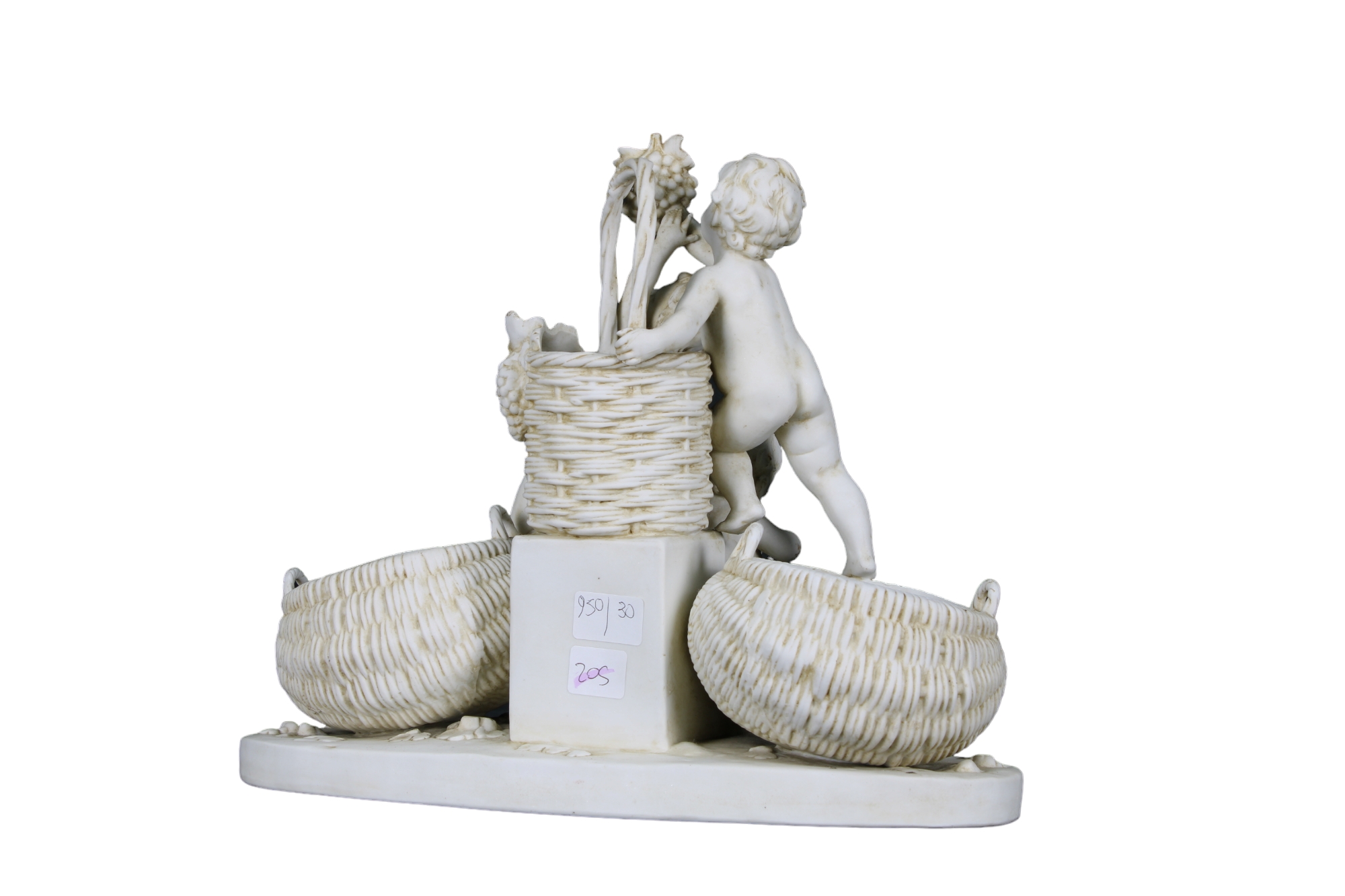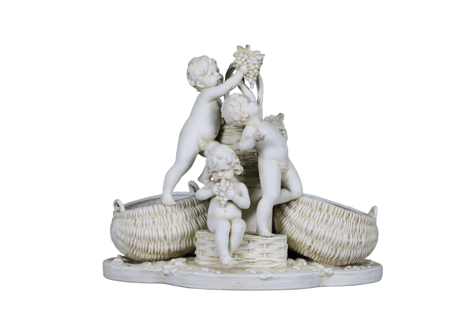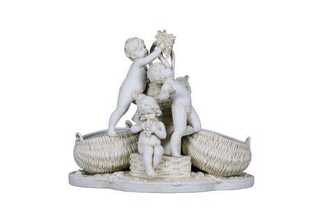 GRUPPO SCULTOREO in biscuit raffigurante l'allegoria della vendemmia manifattura francese fine XX secolo h cm 25 x 34 x 17