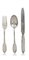 SERVIZIO DI POSATE IN ARGENTO, BOLOGNA, PUNZONI DEL FASCIO, ARGENTIERE CLEMENTI, composto da sei coltelli, forchette e cucchiai, sei coltelli da frutta, dodici cucchiaini da caffè, un mestolo e sei posate da portata