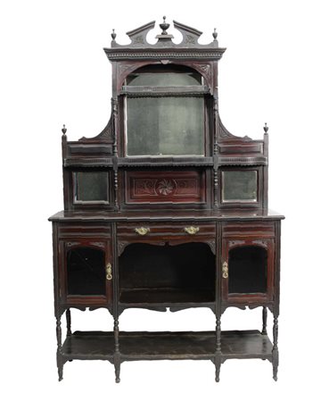 ETAGERE in mogano con alzata decorata da balaustra e applicazioni in bronzo Sicilia primi 900 h cm 220 x 135 x 40