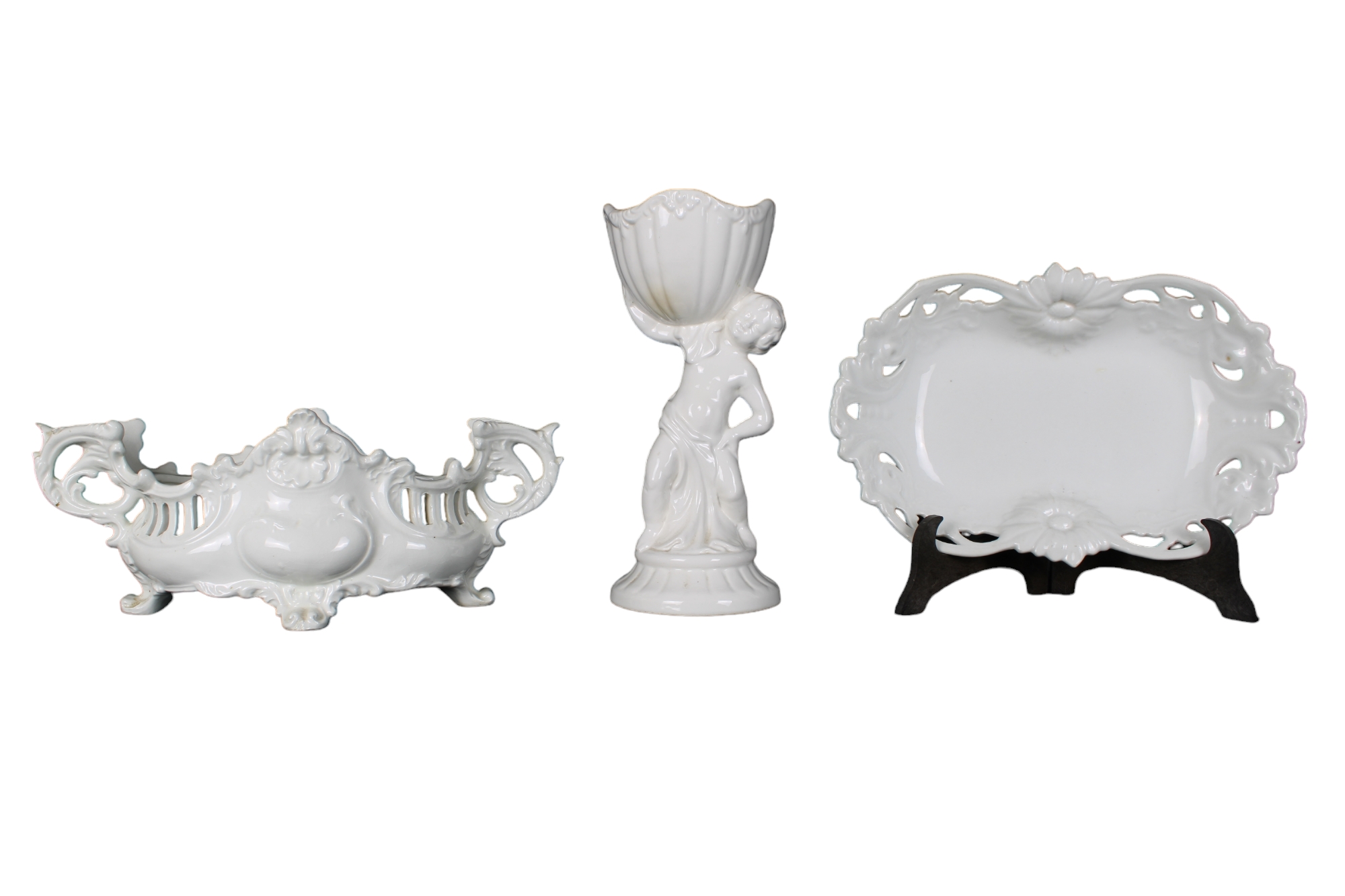 LOTTO DI 3 CENTROTAVOLA in porcellana bianca manifattura Bassano e maestranze italiane XX secolo misure varie