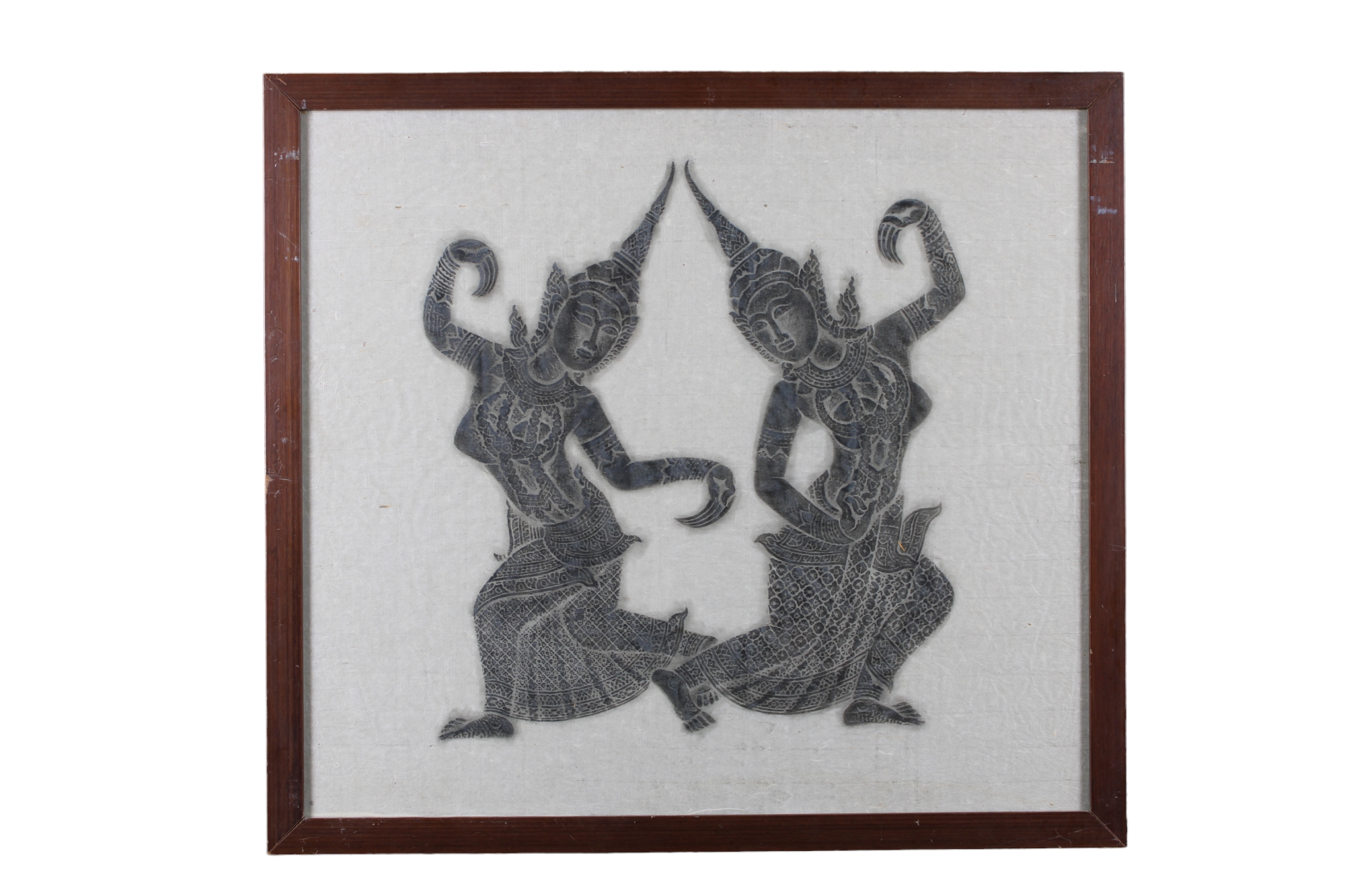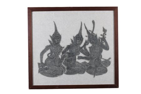 LOTTO DI CHINE SU CARTA DI RISO raffiguranti personaggi arte tradizionale Thailandese XX secolo h cm 58 x 63