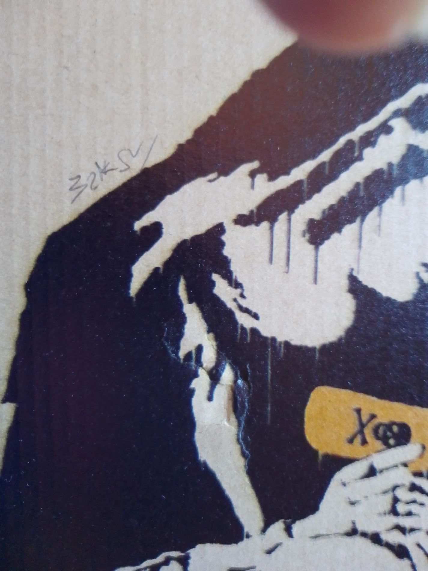 BANSKY (Bristol 1974) Spray Stencil Graffiti su Cartone CM 31x24,5 Tiratura...