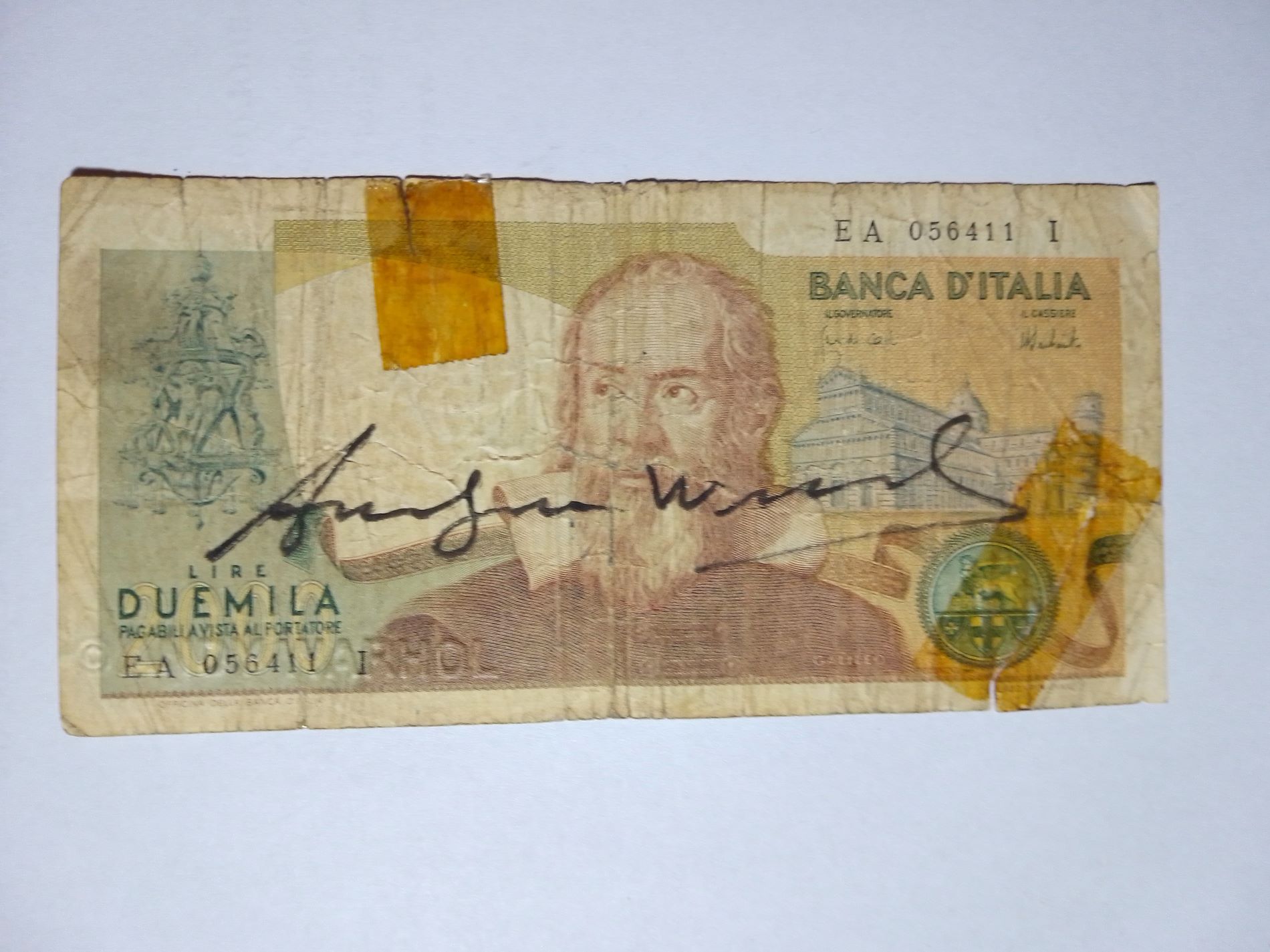 ANDY WARHOL (1928-1987) Intervento Banconota Italia 1973 Lire 2000 Galileo...
