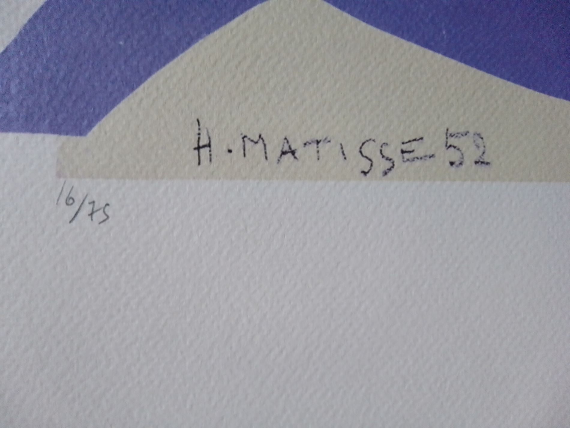 HENRI MATISSE (1869-1954 Litografia su Carta Cotone CM 70X50 anno 1952 Firma...