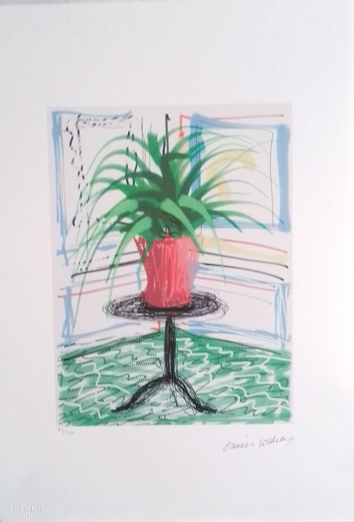 DAVIDE HOCKNEY (1937) Litografia CM 50X35 Titolo -Natura Morta- Firma della Fondazione al Fronte, Tiratura a Matita, Edizione Spadem Parigi Timbro Secco Certificato Accluso