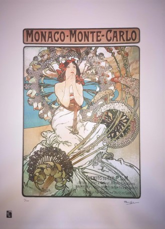 ALFONSO MUCHA (1860-1939) Litografia Originale a Tiratura Limitata CM 70X50Titolo -Monaco Montecarlo- Firma e Anno in Lastra in Basso a Sinistra, Tiratura a Matita 12/100 in Basso a Sinistra, Firma per Autentica della Fondazione Fuori Lastra in Basso a Destra, Editore La Piume Societa' Parigi, Timbro a Secco Le Palme, Certificato Accluso