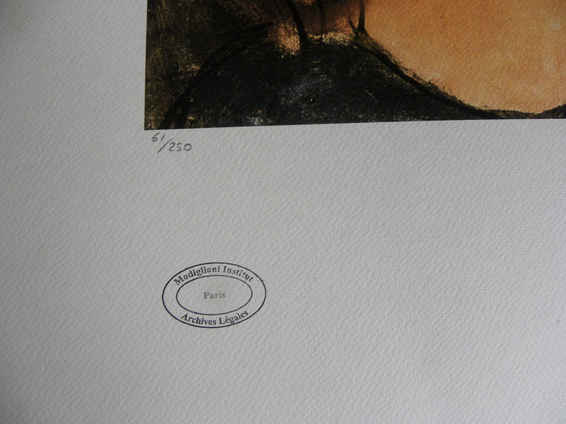 AMEDEO MODIGLIANI (1884-1920) Litografia a Colori CM 70X50 Titolo -Pensiero Interiore- Al Fronte Firma in Lastra e Firma Fondazione e Tiratura a Matita, al Fronte Timbro Archivio Modigliani, al Retro Timbro a Secco Jeanne Modigliani Certificato Accluso