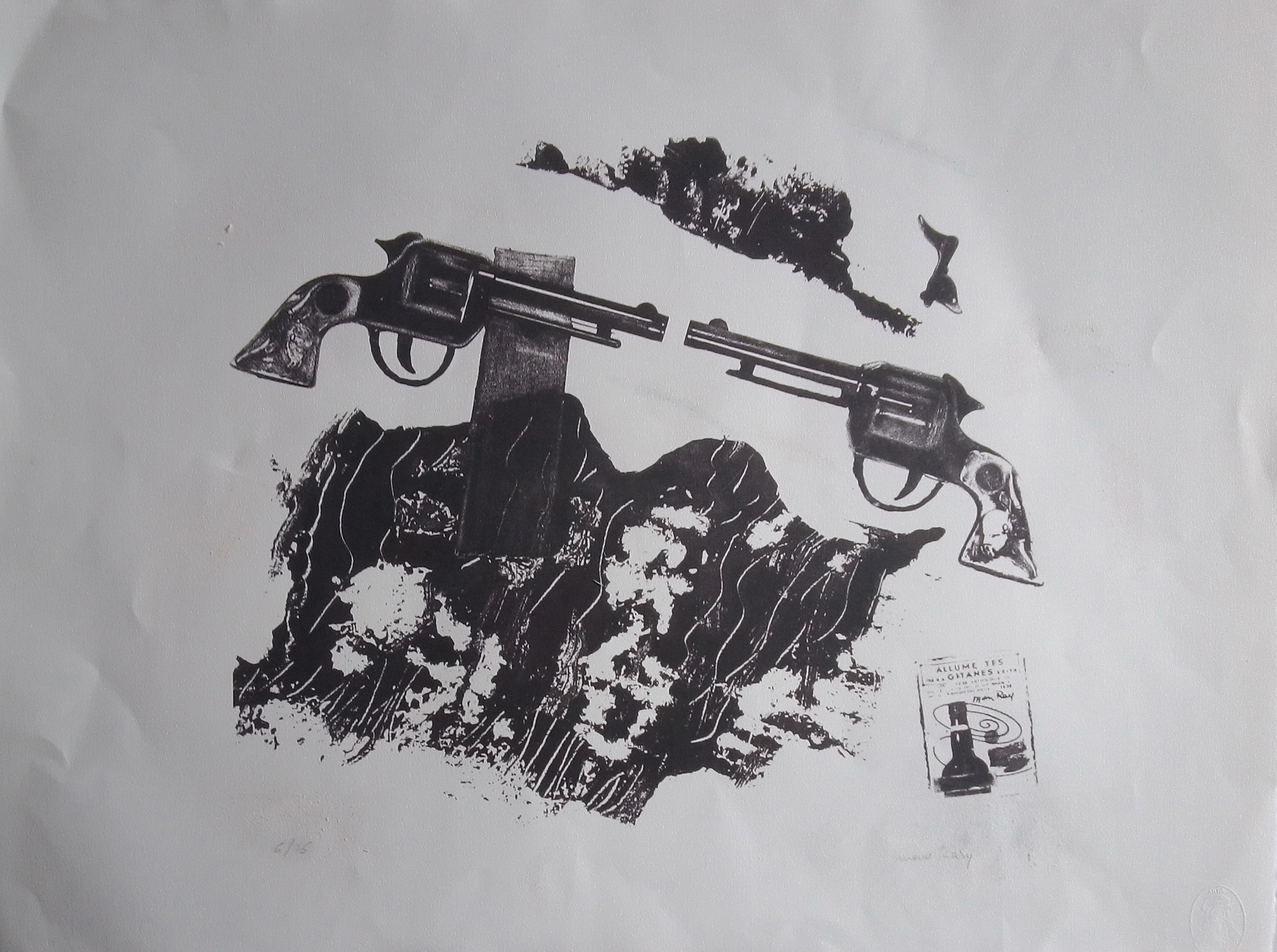 MAN RAY (1890-1976) Litografia CM 65X50 Anno 1969 Titolo -Guns Versus- Firma e Tiratura a Matita al Fronte ,Timbro a Secco, Accluso Certificato