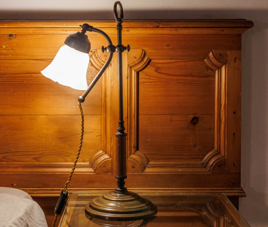 realizzati con fusto in ottone brunito e legno e paralume campanulato in vetro ghiacciato