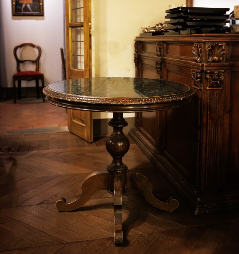 Tavolo circolare in noce intagliato