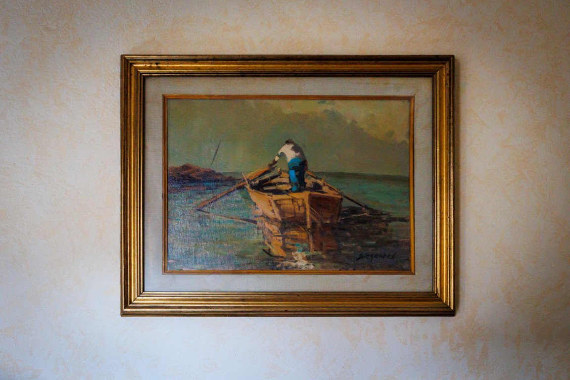 Uomo che rema su un'imbarcazione Pittore italiano del XX secolo