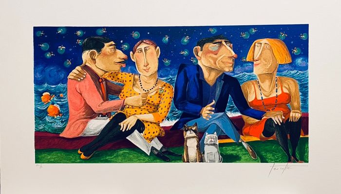 PINO PROCOPIO (1954) Serigrafia Polimaterica a 16 Colori Anno 2002 Titolo -Confidenze Notturne- CM 75X45 Firma e Tiratura a Matita al Fronte Certificato al Retro Senza
