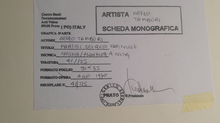 Lotto 146 | ORFEO TAMBURI (1910-1994) Incisione Acquaforte a Colori 1970 Titolo -Parigi...