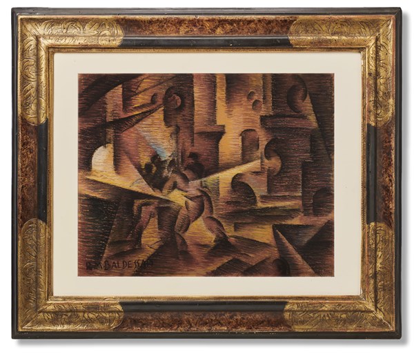 Opera accompagnata da certificato di autenticità su fotografia rilasciato dall'Archivio unico per il catalogo delle opere futuriste di Roberto Marcello Baldessari, a cura di Maurizio Scudiero, con il n. B18-19