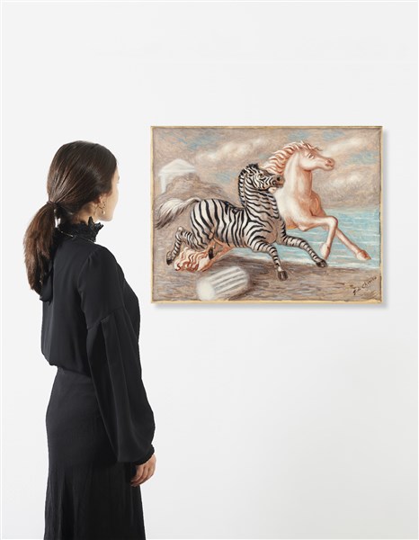 Giorgio De Chirico "Cavallo bianco e zebra in corsa in riva al mare" 1932 circa