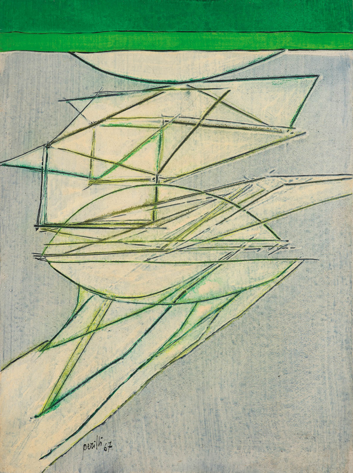 Achille Perilli (Roma 1927 - Ciconia 2021) Vagoverde, 1968;Tecnica mista su...