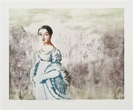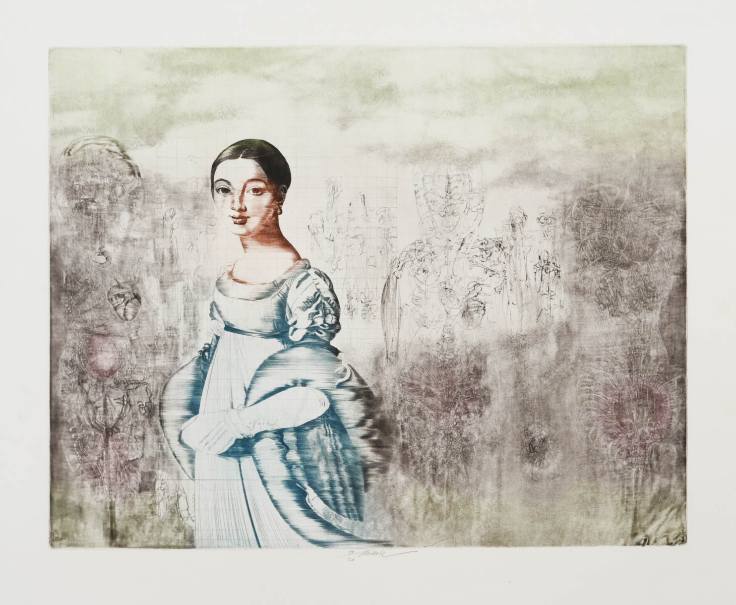 Jiri Anderle (Pavilkov, Rakovnicko 1936) Mademoiselle Riviere, 1970er Jahre;Acquaforte a col. su carta, 50 x 62 cm (lastra), 63,5 x 75,5 cm (foglio)