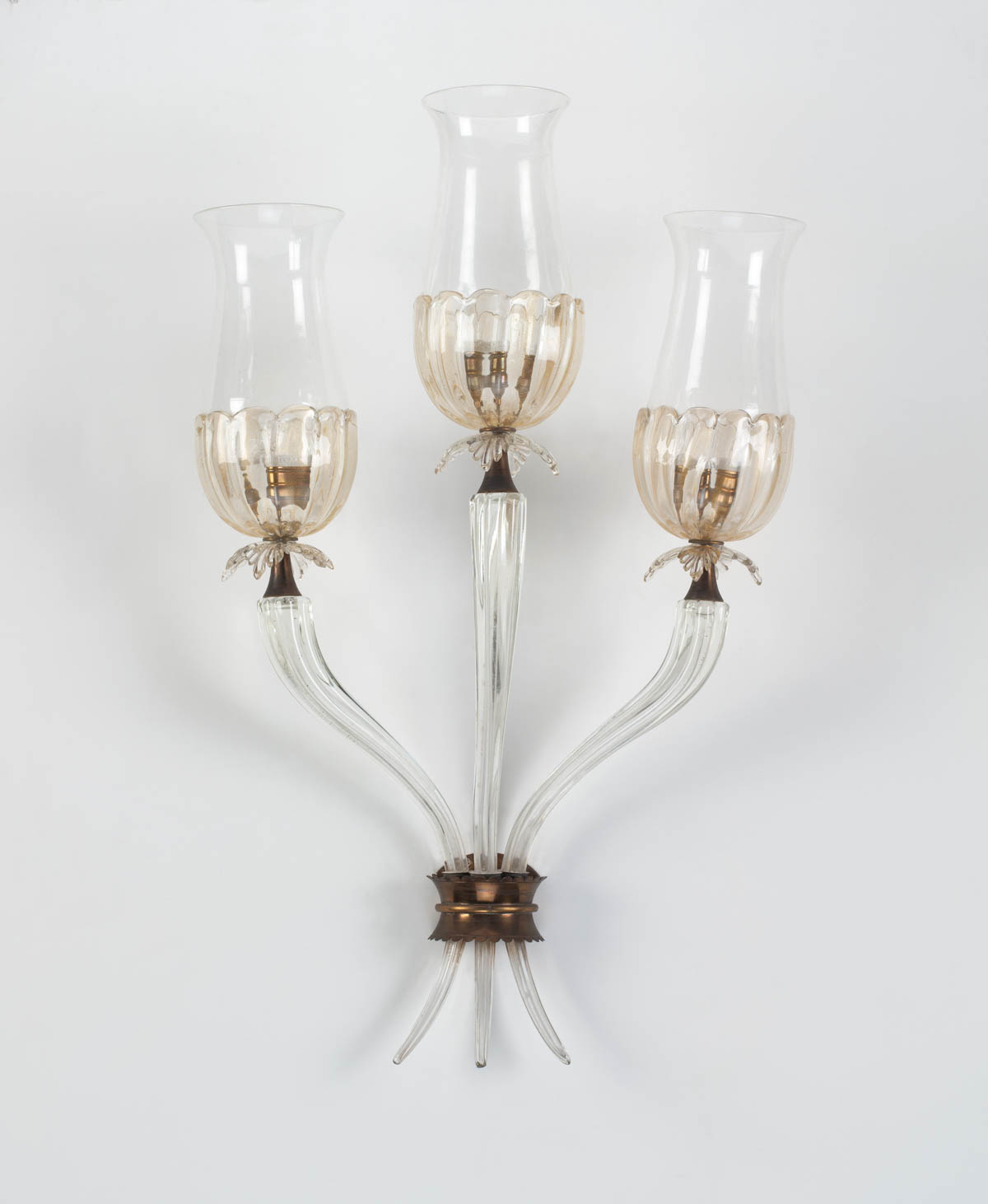 Seguso Vetri d’arte Murano Applique a tre luci Hotel Bristol Merano,...