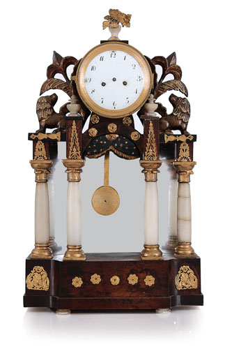 VIENNA PENDOLA DA TAVOLO IN LEGNO DORATO, ALABASTRO E METALLO DORATO, VIENNA,...