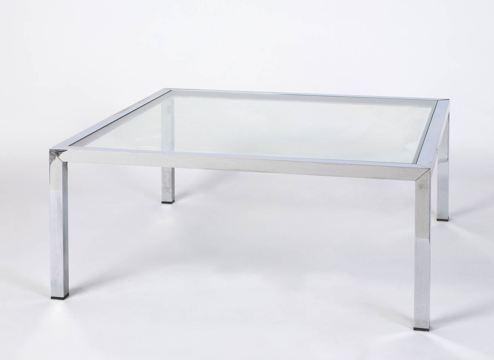 Lotto 116 | Saporiti Tavolino, Anni ‘70;Struttura in acciaio, cristallo, H. 36 cm x 80 x...