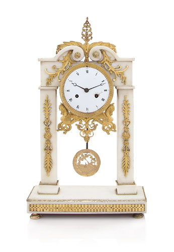 ANONIMO FRANCESE XIX SECOLO PENDOLA DA TAVOLO IN MARMO BIANCO E BRONZO...