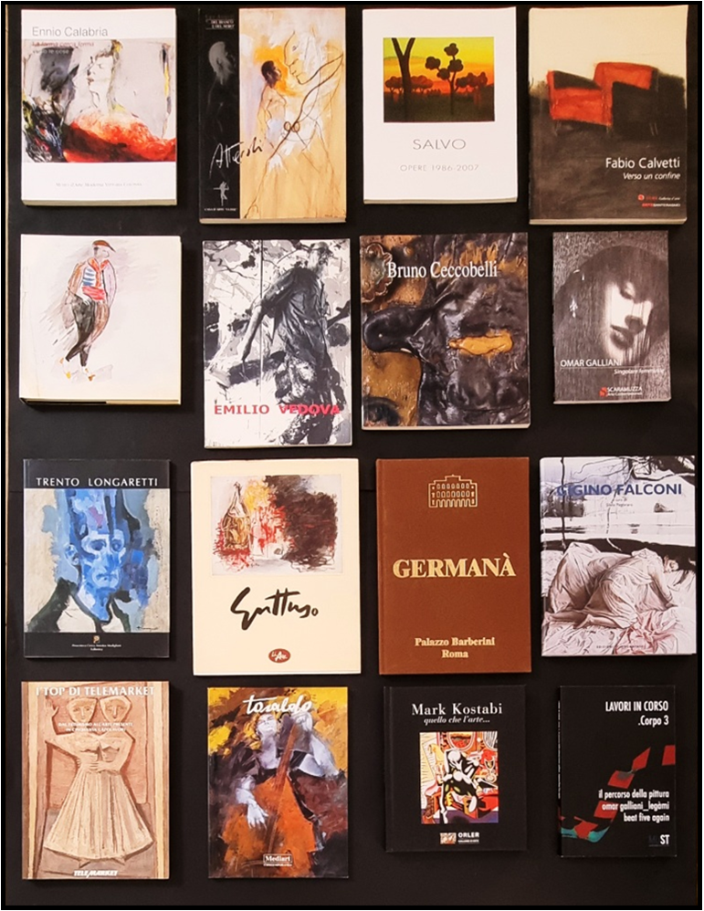 ARTISTI VARI "Catalogo" Blocco di n. 16 cataloghi così composto: Calabria, Attardi, Salvo, Calvetti, Levi, Vedova, Ceccobelli, Galliani (n. 2), Longaretti, Guttuso, Germanà, Falconi, I Top di Telemarket, Toraldo, Kostabi.