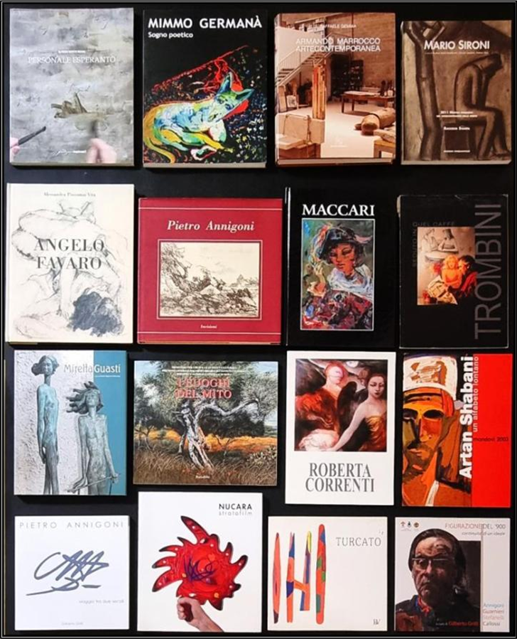 ARTISTI VARI "Catalogo" Blocco di n. 16 cataloghi così composto: Rapetti, Germanà, Marrocco, Sironi, Favaro, Annigoni (n. 3), Maccari, Trombini, Guasti, Azzinari, Correnti, Shabani, Nucara, Turcato.