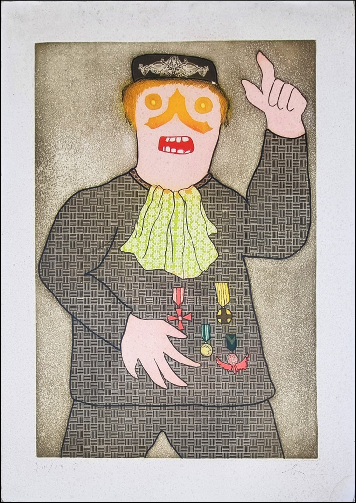 BAJ ENRICO Milano 1924 - Vergiate 2003 "Senza titolo" Serigrafia materica su cartoncino cm 50x70. Firmata sul fronte in basso a destra, tiratura 70/125 a sinistra.