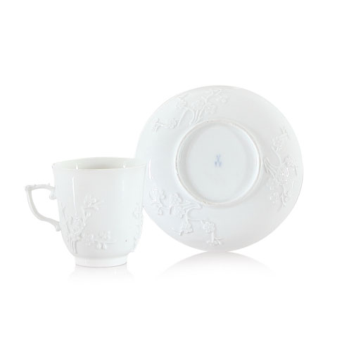 Lotto 191 | MEISSEN TAZZA CON PIATTO IN PORCELLANA BIANCA, MEISSEN, 1740 CA., a campana...
