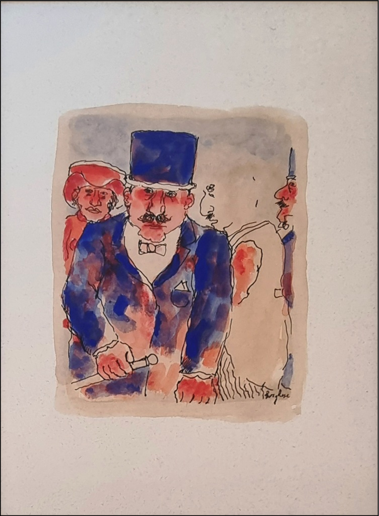 BORGHESE FRANZ Roma 1941 - 2005 "Tre personaggi" Acquerello e tecnica mista su carta cm 25x35. Firmato sul fronte in basso a destra.