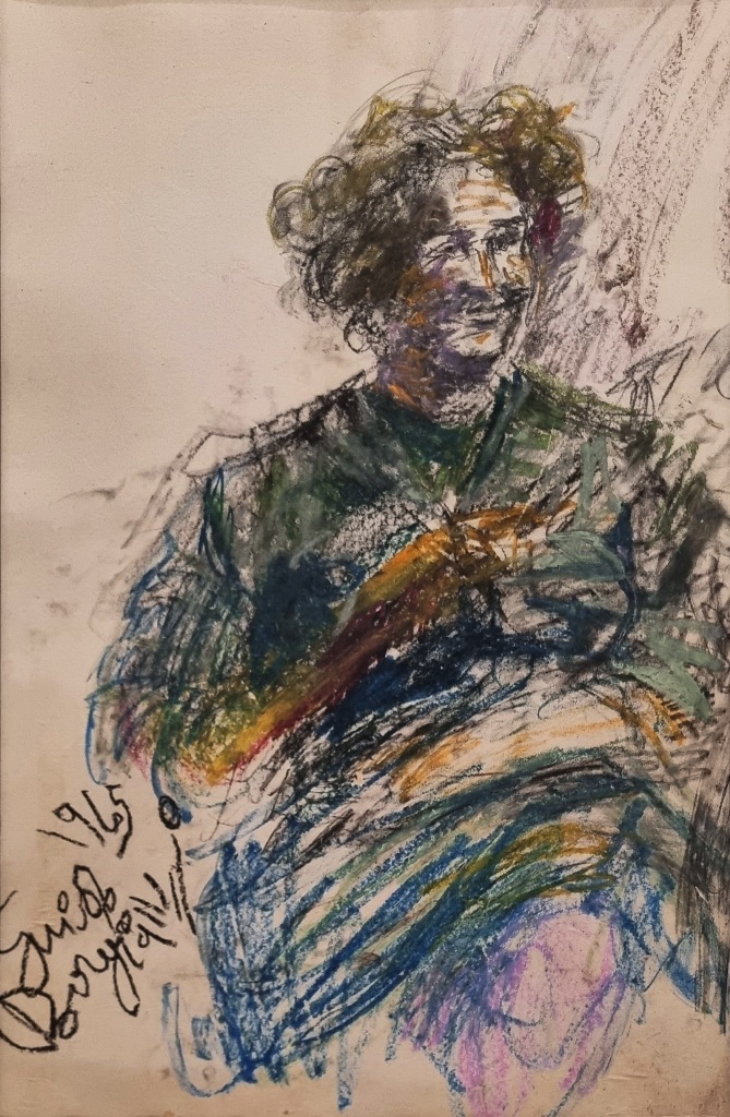 BORGIANNI GUIDO New York 1915 - Firenze 2011 "Ritratto" Carboncino e gessetti su cartoncino cm 60x90, del 1965. Firmato e datato sul fronte in basso a sinistra. Sul retro firmato e dedicato. Certificato di garanzia di altra casa d'aste.