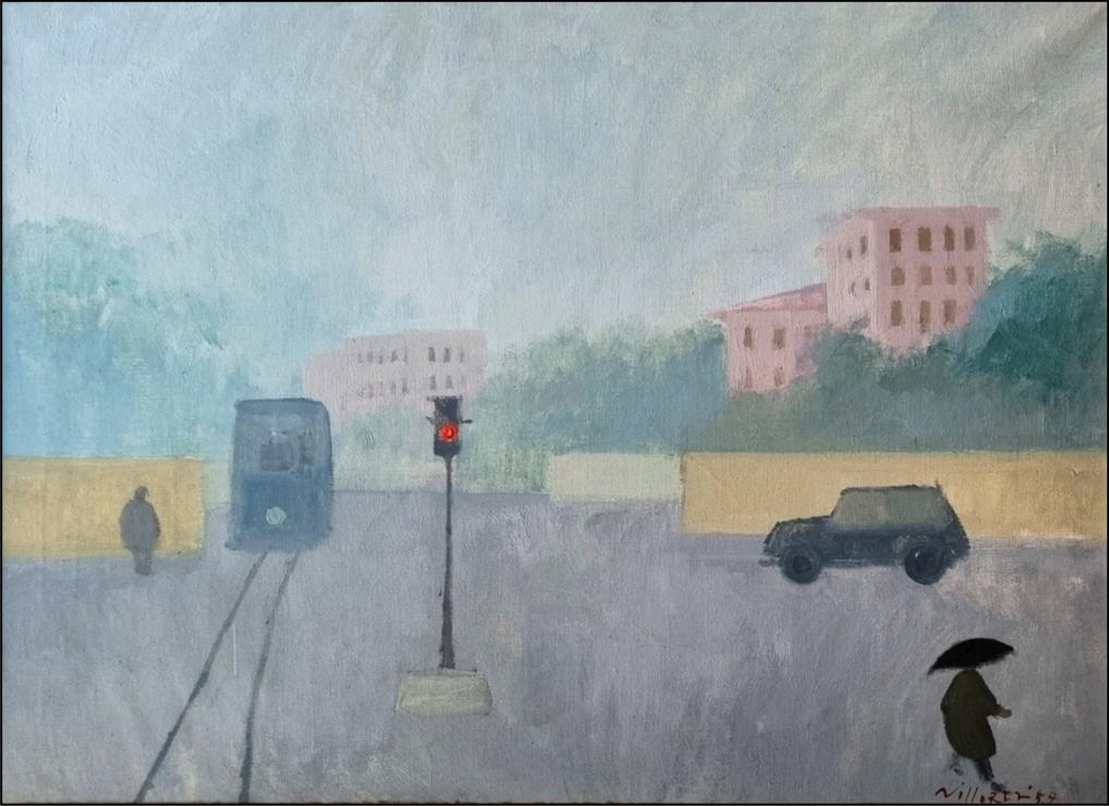 VILLORESI FRANCO Città di Castello 1920 - Arezzo 1975 "Senza titolo" Olio su tela cm 70x50 del 1957. Firmato e datato sul fronte in basso a destra. Sul retro firma, timbro della Galleria Arte Agostini e timbro della Galleria Consorti.