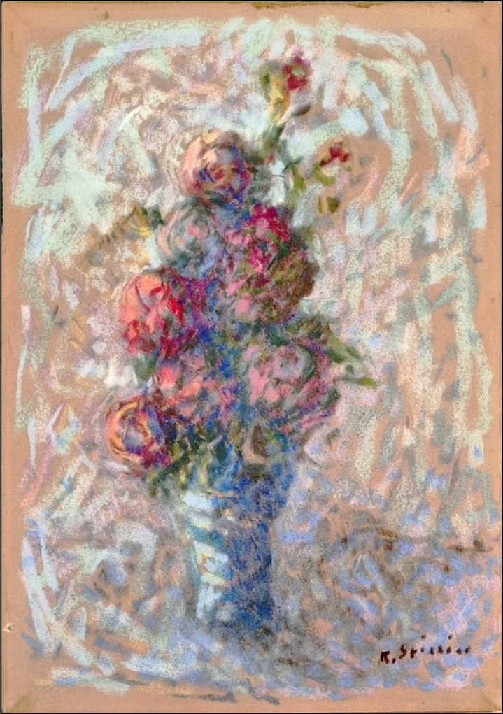 SPIZZICO RAFFAELE Bari 1912 - 2003 "Senza titolo" Pastelli cerosi e tecnica mista su carta, applicata su faesite, cm 23x33. Firmato sul fronte in basso a destra.